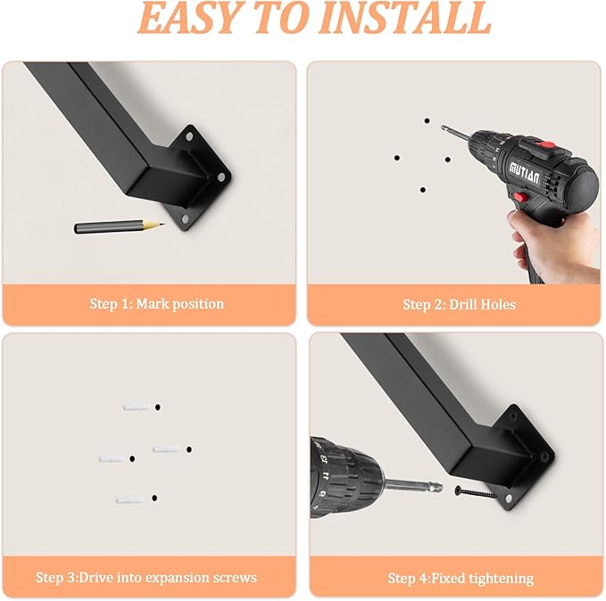 - Easy To Install:The black stair handrail are equipped with tubes,wall bracket, screws,connecting screw,plastic expansion screw,hexagon wrench.As for the three different horizontal,inclined, or vertical installation methods