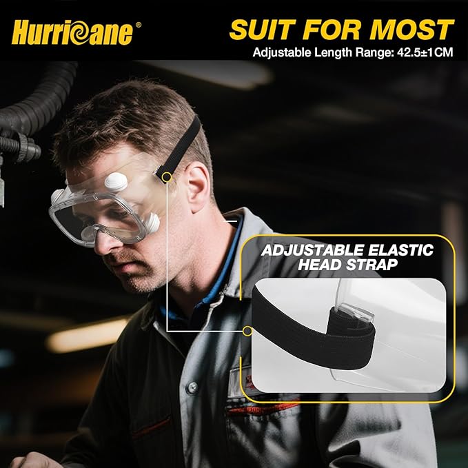 HURRICANE 2 Pack PVC safety goggles, UV400 transparent lenses, with white air valve, anti-fog function, adjustable elastic band
