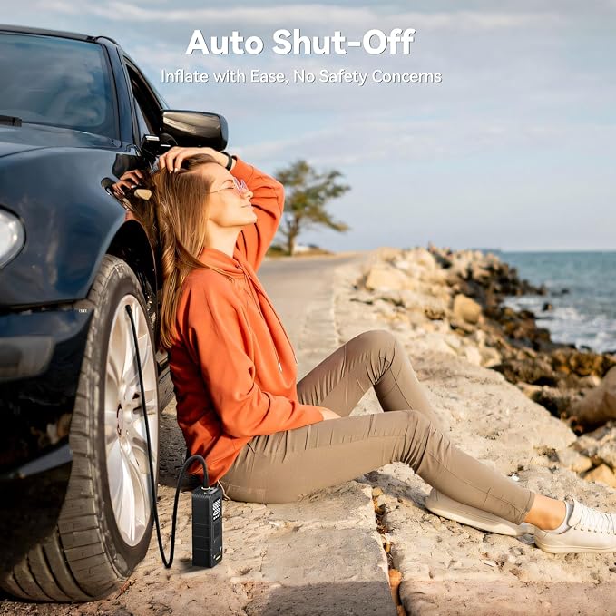 - [Travel Companion] MODARI tire inflator portable air compressor is your reliable travel partner. This air compressor for car can inflate a 205mm tire from 30PSI to 36PSI in 1 minute. Perfect for long road trips, this portable tire inflator for car lets you top up tire pressure quickly—about the time to enjoy a cup of coffee! Skip the trip to the gas station to pump deflated tires or replace a spare tire on the way. This air pump for car tires can let you enjoy the absolute pleasure of driving