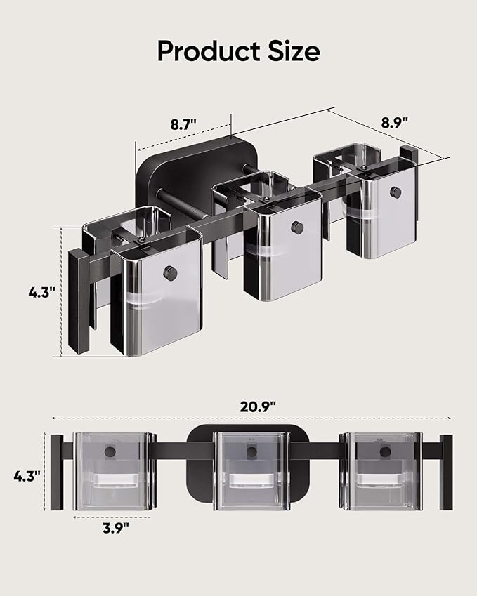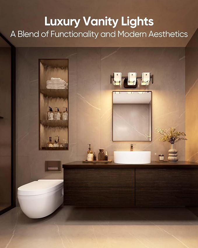- LUXURY VANITY LIGHTING: The JACKYLED 3-head bathroom vanity light features a sleek all-metal frame and three elegant ashy split-glass lampshades. Its artistic design and practical functionality bring a touch of sophistication and warmth to your bathroom. Even during the day when the light is off, the stylish design adds a modern aesthetic touch.