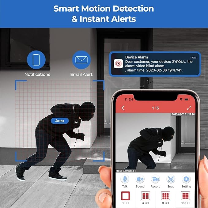 - Smart Motion Alerts: Instant notifications sent to your phone when movement is detected.