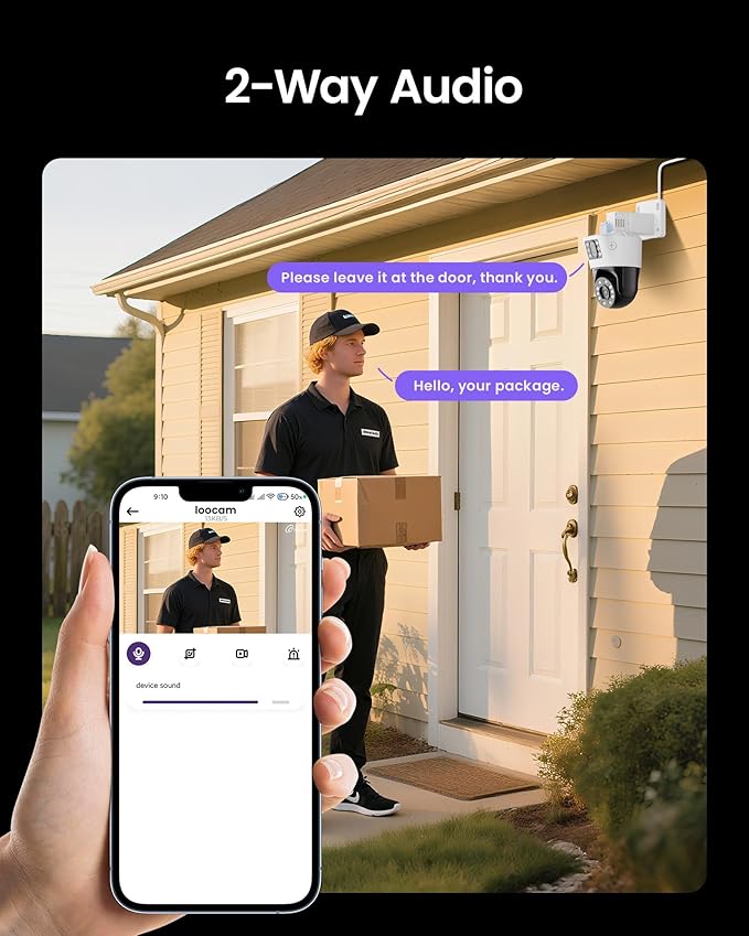 - Remote Access, Playback & Two-Way Audio: Use the free Loocam APP/AVSS on smartphones, tablets, or PCs to view live feeds or recorded footage anytime, anywhere. Stay updated on your home or business with 24/7 continuous monitoring and playback. Clear two-way audio lets you communicate with family or deter threats while monitoring both visuals and sound for enhanced security.