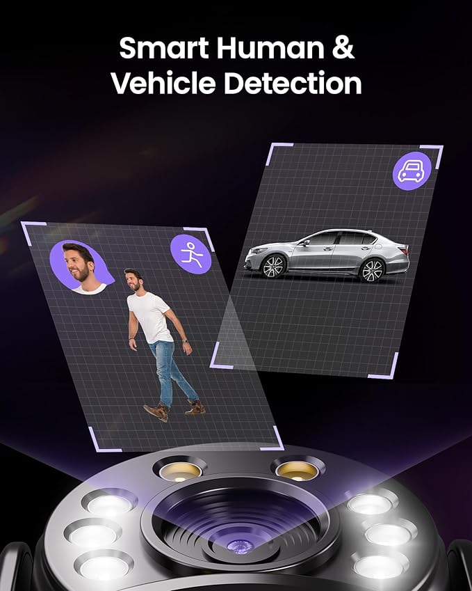 - Smart AI Detection & Instant Alerts: Advanced AI-powered detection identifies people, vehicles, and motion while minimizing false alerts from shadows or foliage. The 8 channel security camera system triggers automatic siren and spotlight alarms when motion is detected, sending instant app push notifications to your mobile device.