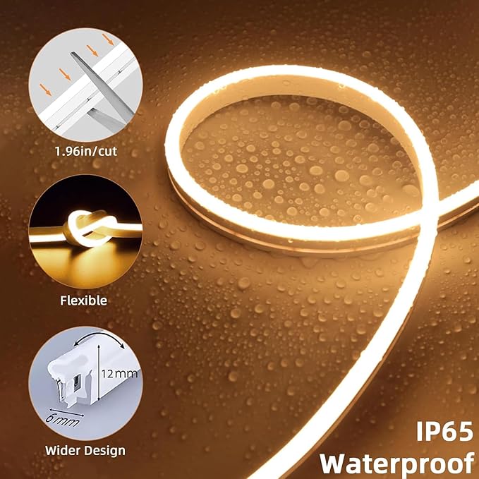- 【3000K Warm White】- The neon rope lights include 1800 super bright warm white LEDs with 24V working voltage and 3000K Color Temperature. Upgraded LED and Side-Brightness Design Make LED strip Lights Shine Brighter than others, 120 Degrees Projection Range offers Large Illumination Coverage, and the Light is very even down the Strip