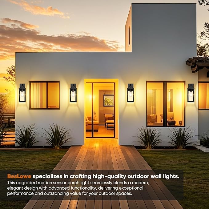 - 2025 Upgraded Motion Sensor Outdoor Lights: BesLowe is a brand dedicated to outdoor wall lights. Equipped with advanced PIR motion and photocell sensors, this outdoor wall lantern offers 3 customizable lighting modes for optimal energy efficiency and security. Beyond that, this outdoor motion sensor light utilizes the latest sensor design for a sleek look and easy operation. With a simple click, you can effortlessly switch between motion sensor modes and say goodbye to complex steps