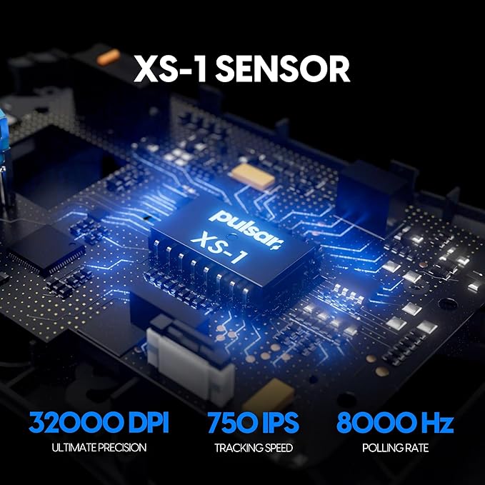 - XS-1 Flagship Sensor - The XS-1 Sensor, exclusive to Pulsar, boasts an impressive 32,000 DPI resolution, 750 IPS tracking speed, and 50g acceleration, delivering unparalleled precision and speed.