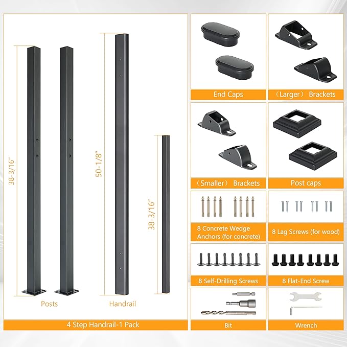 - 【Double-Layer Protected Carbon Steel Material】 Our 4 step outdoor handrails are made of premium carbon steel with dual-layer protection: first, a galvanized layer to prevent rust, followed by a durable powder coating for added resilience. This double-layer protection makes our railing highly resistant to weather conditions, whether rain, snow, or strong sunlight, ensuring it stands up to outdoor elements over time. It's a perfect, long-lasting addition for steps, decks, and patios, suitable for both residential and commercial applications.