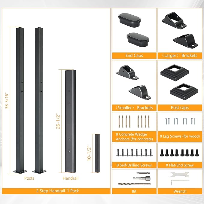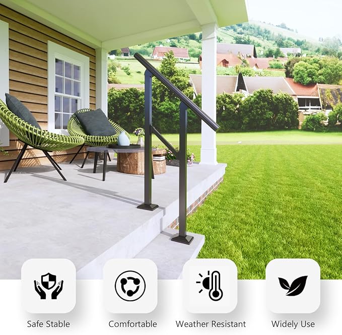 - 【Double-Layer Protected Carbon Steel Material】 Our 2 step outdoor handrails are made of premium carbon steel with dual-layer protection: first, a galvanized layer to prevent rust, followed by a durable powder coating for added resilience. This double-layer protection makes our railing highly resistant to weather conditions, whether rain, snow, or strong sunlight, ensuring it stands up to outdoor elements over time. It's a perfect, long-lasting addition for steps, decks, and patios, suitable for both residential and commercial applications.