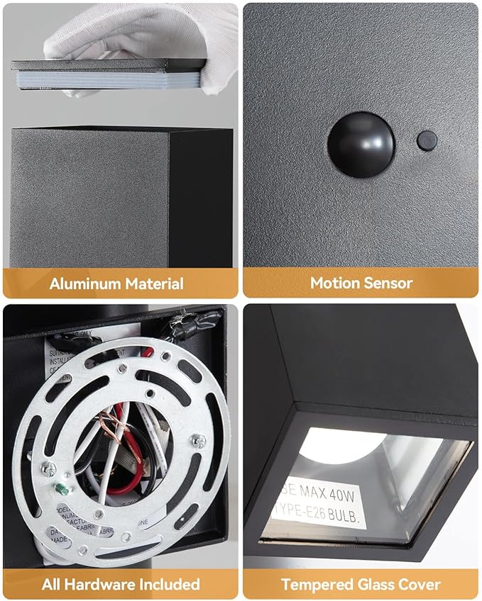 - Compatible with Multiple Bulbs: The porch lights outdoor motion sensor includes two E26 bulb sockets (bulbs not included), compatible with CFL, incandescent, LED, or halogen bulbs. Choose your preferred lighting style, and easily replace bulbs by removing the glass cover, the cover also keeps bugs out.