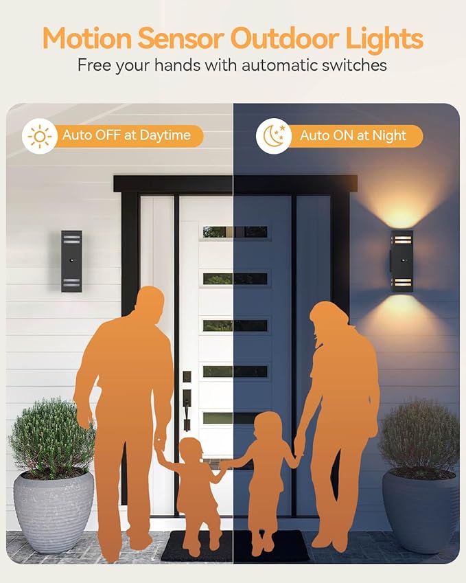 - Wide Detection Range: Equipped with a powerful motion sensor, this outdoor sconce light detects movement within a 120° angle and up to 25 feet away. Whether it's people, pets, or vehicles, the light automatically turns on at full brightness when motion is sensed, ensuring your home is illuminated when needed most.