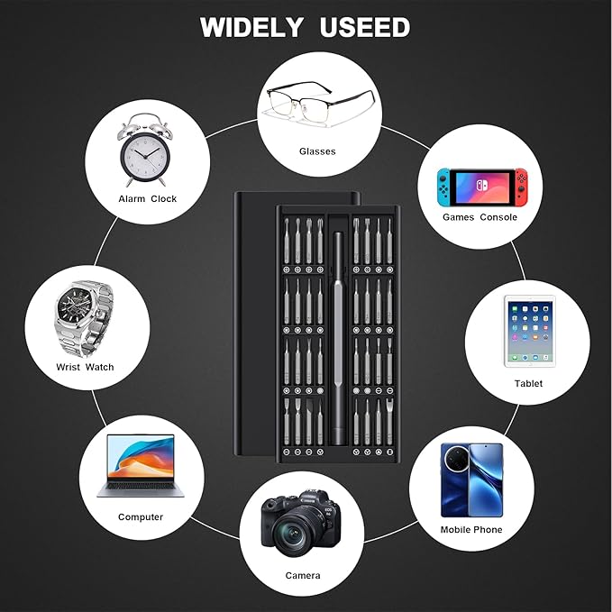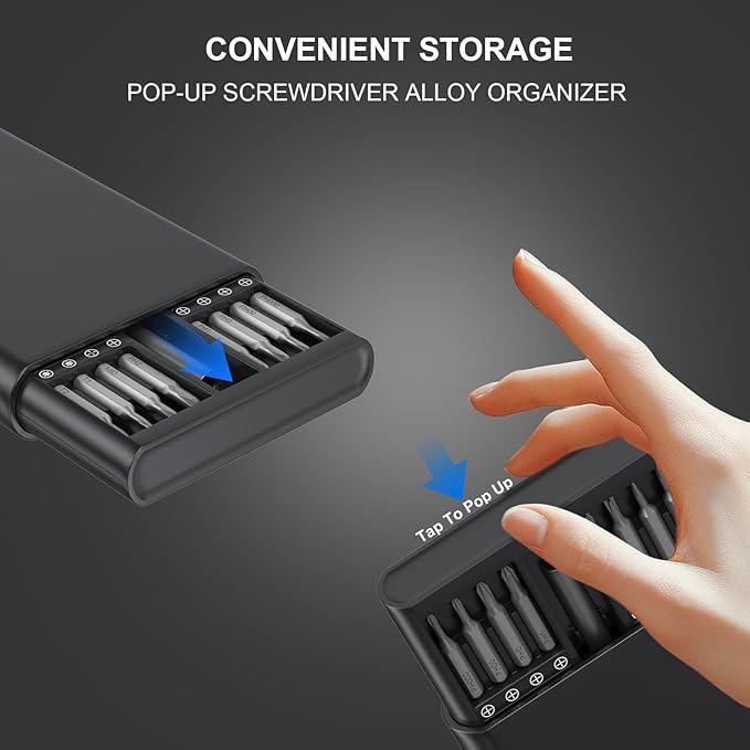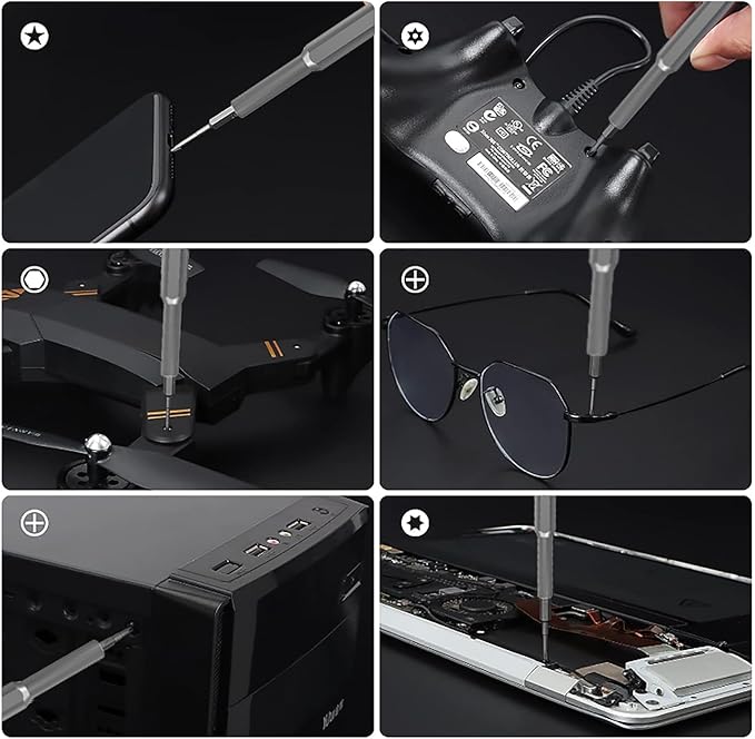 - 【33 In 1 Mini Screwdriver Set】This micro screwdriver set tech tool kit comes with 33 different bits (mono, Phillips, star, flat, plum, plum-safe, pentagonal, hexagonal, etc.) for fixing smartphones,PCs , computers,iPhones, iPad, tablets, Laptop,Laptop,MacBook, eyeglasses, drones, RC cars, gaming consoles, electronic,wearables,jewelry