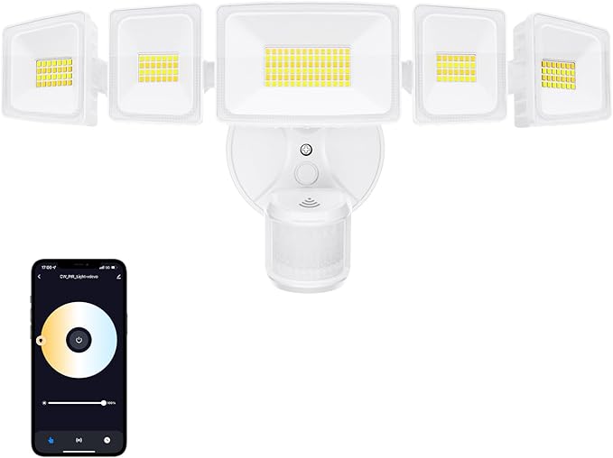 Onforu 5 Heads 120W Smart LED Security Lights Motion Sensor Outdoor, 340° Illumination WiFi Alexa Flood Light 12000LM APP Control, 2700K-6500K Exterior Motion Detector, IP65 Wall Light for Yard, White