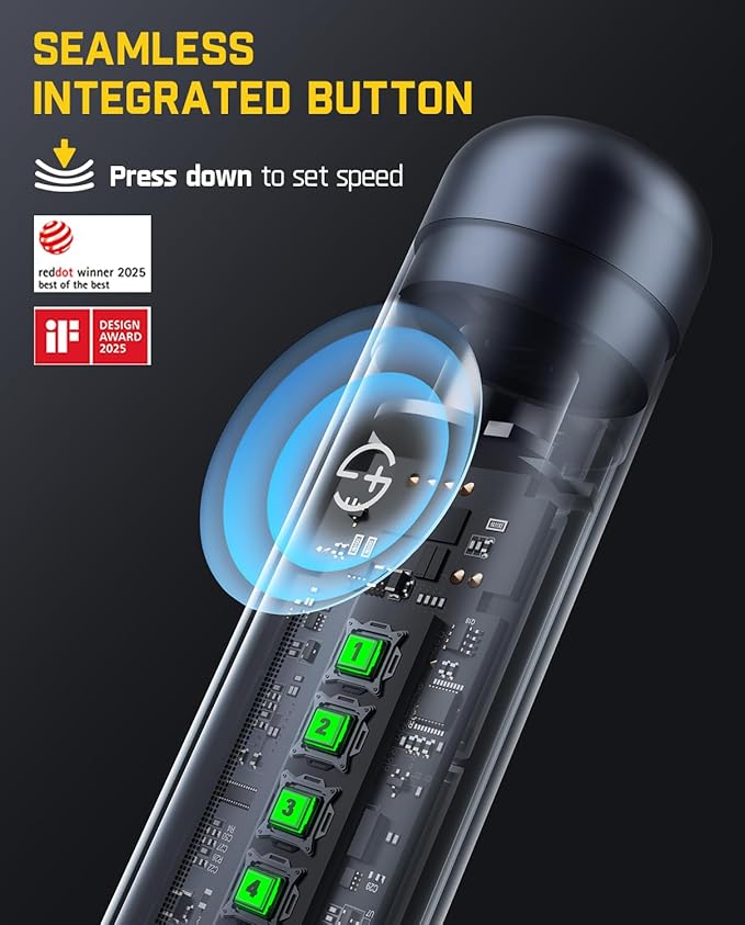 - Stylish & Practical: Seamless integrated speed control button, waterproof and dustproof for easy cleaning, adaptable to any work environment. Innovative LED speed indicator displays real-time settings for precise operation at every step