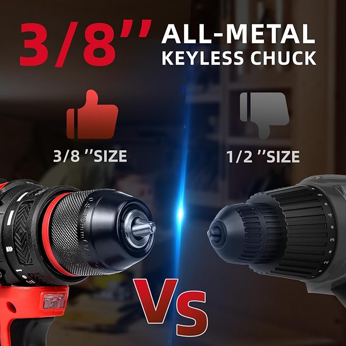 - Hand Drill: Battery Drill 3/8" keyless chuck with efficient 2 × 2.0Ah lithium battery, providing long-lasting and stable power output, ensuring that the drill can apply strong torque force in various working environments. Whether it is drilling, tightening screws, or any other DIY project, it can be easily handled, improving work efficiency.