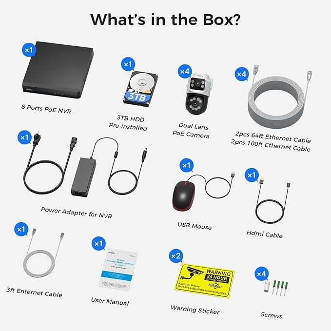 - 【3TB HDD+ 7/24/365 Record+ Smart Playback】We have Various Record Modes like ①Regular 7/24/365 ②Motion Detection Record . AI Algorithm Tech allow you to select a certain period to playback the videos you want