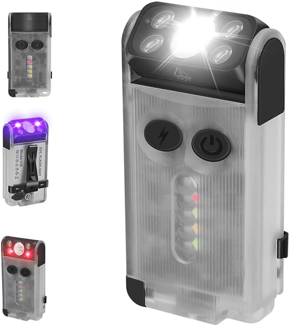 Vortex V30 EDC Flashlight Red UV Green Warm White Light Emergency Signals Fluorescent Powerful 900 Lumen Rechargeable Pocket LED Keychain Flashlight Magnetic end 180° Twistable Head 2-Direction Clip