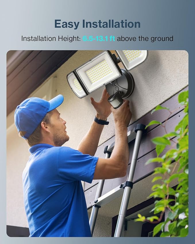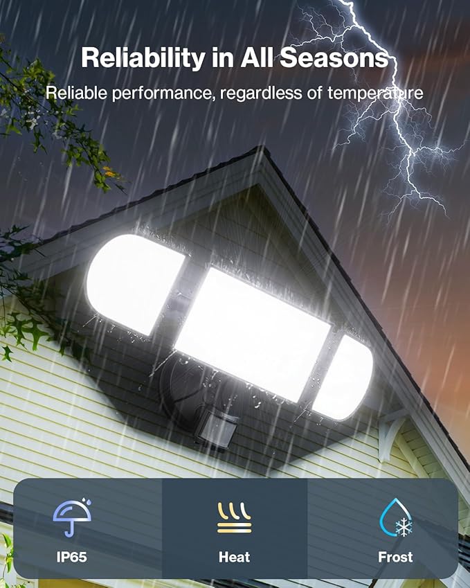 - Built to Last: With an IP65 waterproof rating, these motion detected lights withstand any weather – rain, snow, extreme temperatures, ensuring reliable performance year-round.