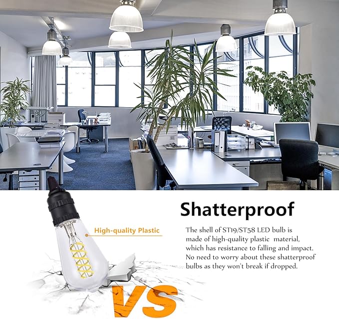 - 3. UNIQUE DESIGN: No mercury, no UV & IR, no dazzling, flicker-free, extreme low heat dispersion and premium clear plastic. The vintage LED filament bulb, with unique flexible spiral filament pattern, preserves the design of antique Edison light bulb looking. Daylight 5000K light is relaxing, cozy and easy on the eyes.