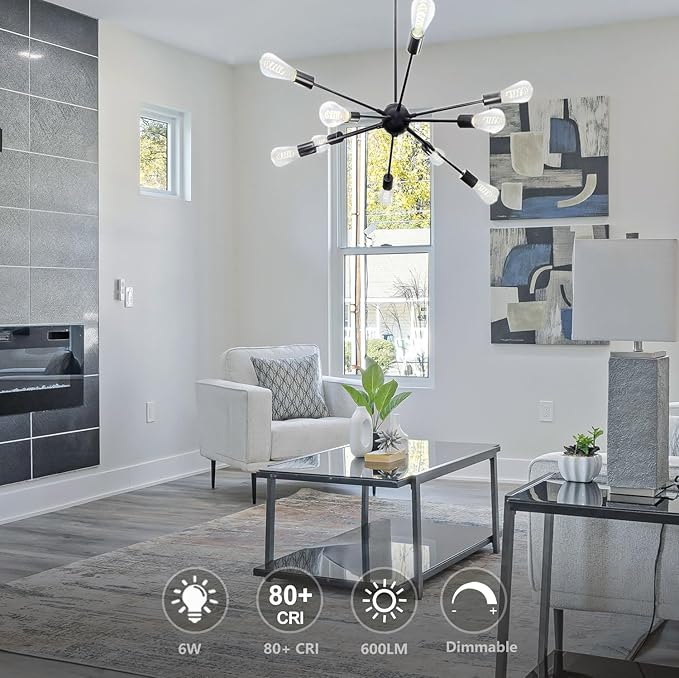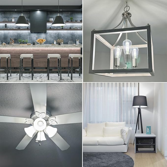 - 4. VERSATILE APPLICATIONS: Fit into E26 standard screw base and install into fixtures directly. Great suit for chandeliers, wall sconces, pendant lighting, home or commercial decoration, such as kitchen, dining room, living room, bedroom, laundry room, bar, coffee shop and restaurant.