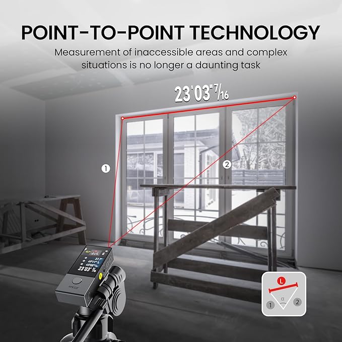 - Advanced P2P Technology: With cutting-edge Point-to-Point (P2P) functionality, the D9 Pro allows for quick distance measurements between any two points from a single location—ideal for hard-to-reach areas like beams, ceilings, and other complex spaces.
