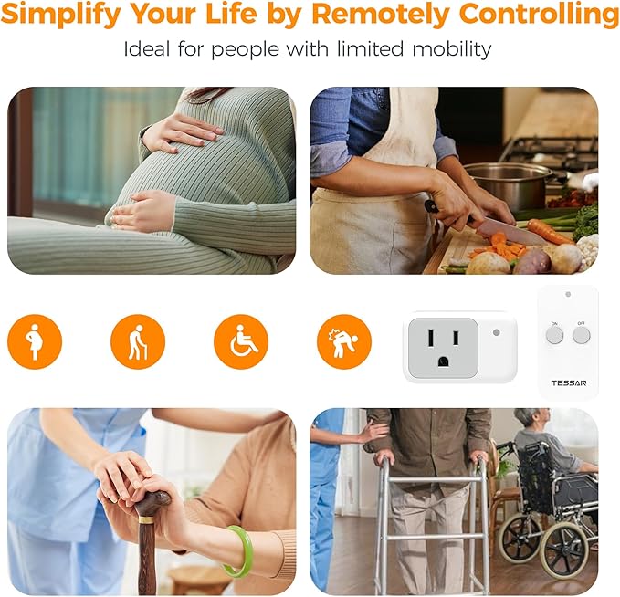 - Convenient to Use: The re-programmed remotes control 1 remote light switch, simply plug and play; Easily control hard-to-reach home appliances next to sofa and bed stand; Good for the elderly, pregnant women and those with limited mobility