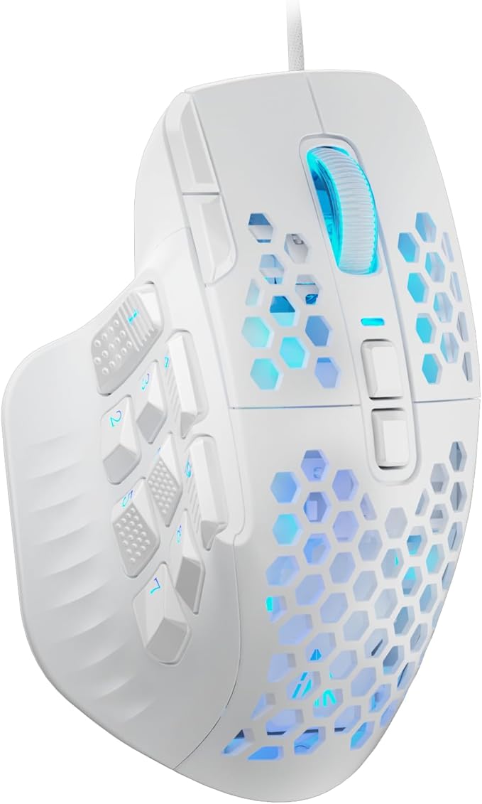 - Ergonomic Gamer Mouse: SM809 is a lightweight gaming mouse featuring a unique honeycomb design that not only reduces weight but also accommodates palm or claw grip styles, making it ideal for users with larger hands. Its ergonomic design helps reduce wrist strain during prolonged use, ensuring comfort for extended gaming sessions. Additionally, the honeycomb structure is reinforced to withstand frequent clicks, enhancing durability. The bottom of the mouse is equipped with smooth Teflon feet pads for enhanced glide and longevity. Overall, this wired computer mouse offers a durable and reliable solution for gamers.