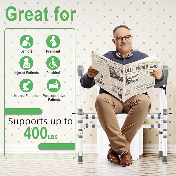 Foldable Toilet Safety Rail for Seniors, Toilet Safety Frame Height Adjustable, Heavy Bathroom Rail with Armrests, Bathroom Safety for Elderly and Disabled(400LBS)