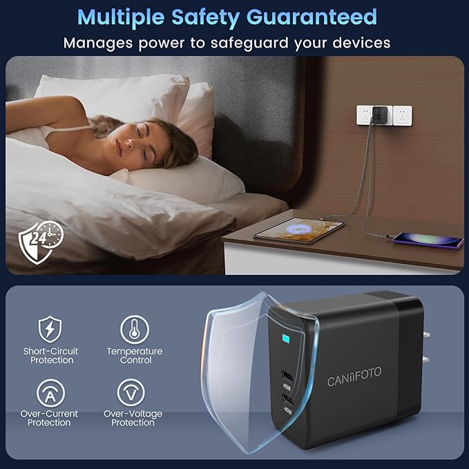 - 【Real 2-Port Simultaneous Super Fast Charging】:Adopt dual-channel independent output technology that enables 45 watt fast charger type c to effortlessly deliver simultaneous power output of 45W from 2 ports without compromising power efficiency in the slightest. Whether it's your phone, tablet, or even your notebook, super fast charger type c 45w Kit has the power to simultaneous handle them all without any slowdowns.