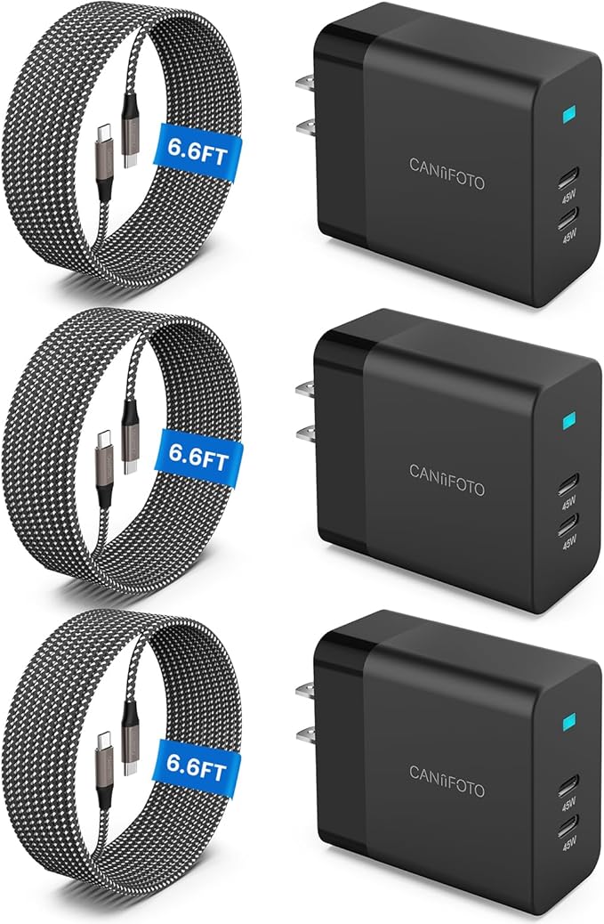 2Port 45W Super Fast Charger Type C, 3Pack 45W USB-C Charger Android Phone Charger Fast Charging for Samsung Galaxy S24 Ultra/S24+/S24/S23 Ultra/S23+/S22/S20/Note10+/Tab S9 with 3X 6.6ft Type C Cord