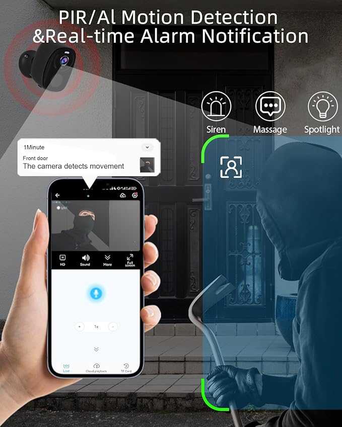 5G/2.4G WiFi Security Cameras Wireless Outdoor, 2K 5G Security Camera with AI Motion Detection, Color Night Vision, Siren, IP65, 2-Way-Audio, Support Alexa&Google Assistant, Cloud/SD (4)