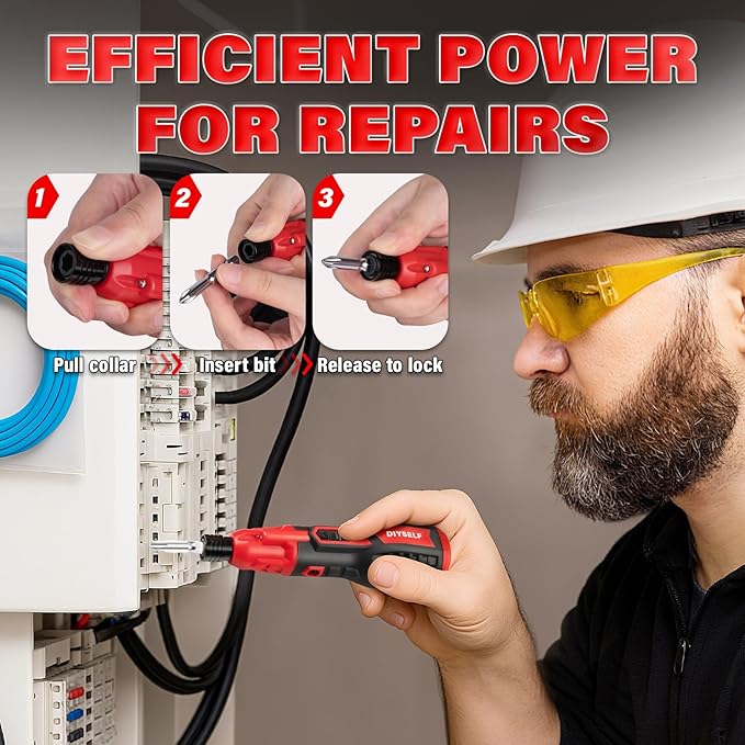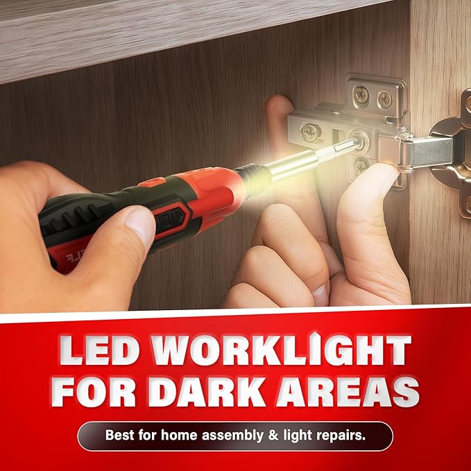 - Versatile Use: From quick repairs to light assembly projects, this small electric screwdriver is perfect for furniture assembly, cabinet hardware, and door hinges or handles, as well as small appliances, switch plates, and general household fixtures. Great for patio furniture, camping gear, and small mechanical parts. A handy tool set for use at home, in the garage, or outdoors