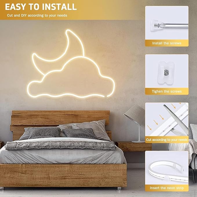 - 【Cuttable & Extendable】- Along the black marker line, cuttable every 1.96", you can cut it to DIY special residential decoration or design a unique commercial sign, 2400LEDs create soft decent no-spot fluent lighting that inspires your imagination creating different shapes and patterns to bring a stunning lighting effect