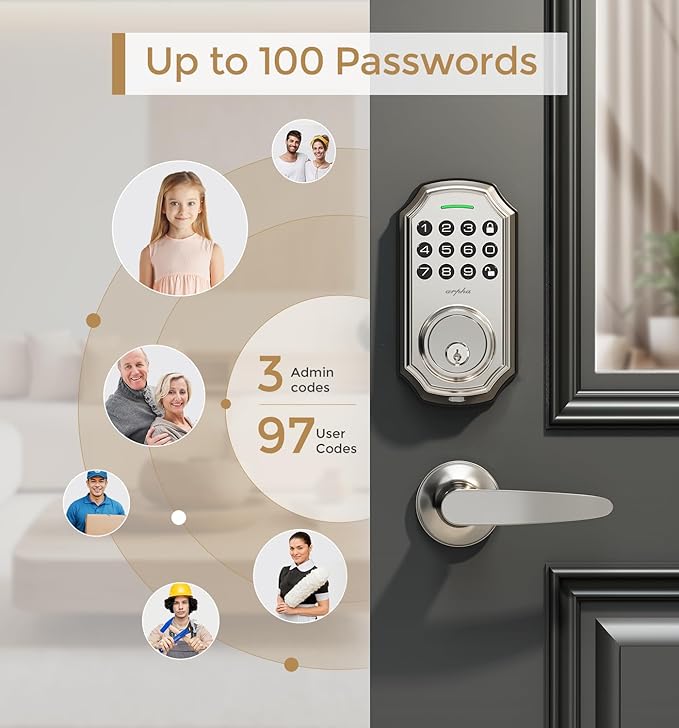 - Special Feature : Anti-Peeping Password, Bluetooth App Control, Keypad Deadbolt with Handle Set, One-Touch Lock