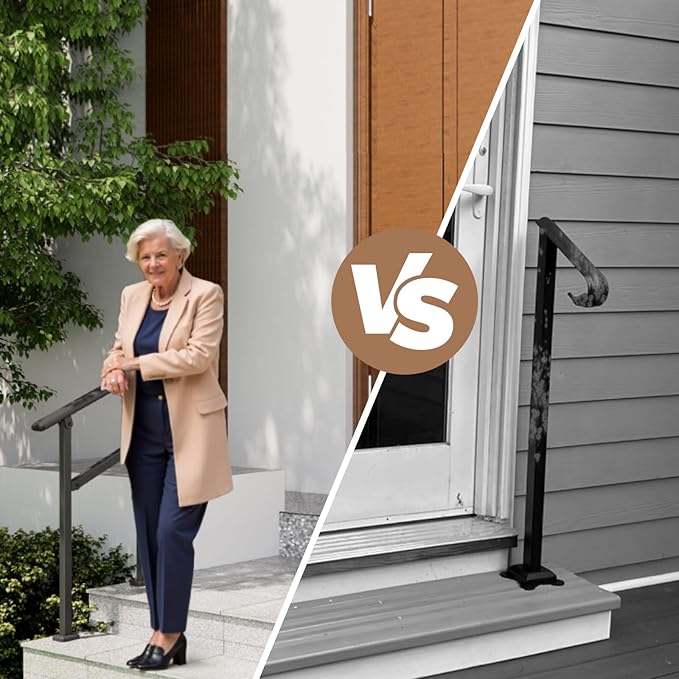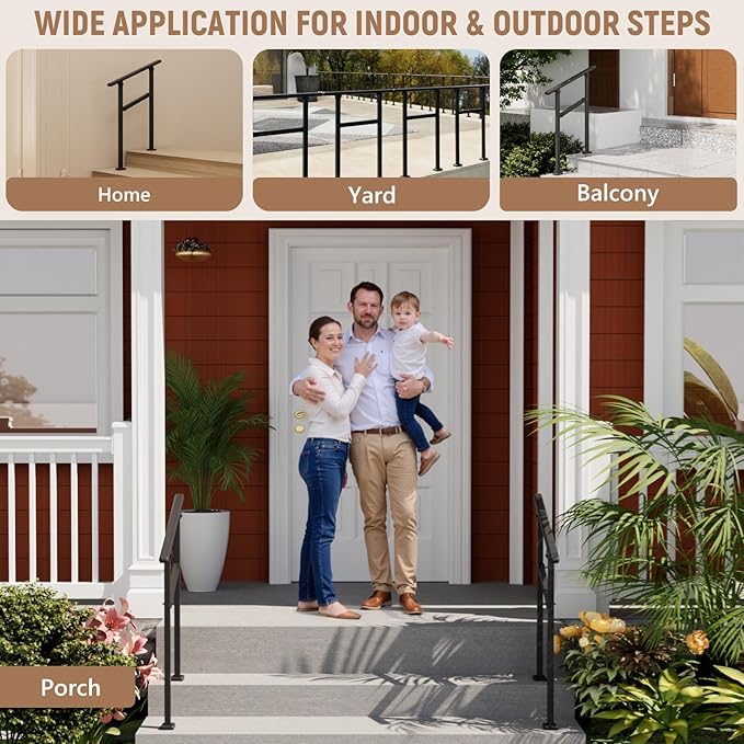 - Wide Application: Suitable for concrete, wood, tile, marble, and other solid surfaces, this outdoor step handrail is ideal for patios, balconies, porches, gardens, residential buildings, hotels, garages, and more. It enhances safety and accessibility wherever needed.
