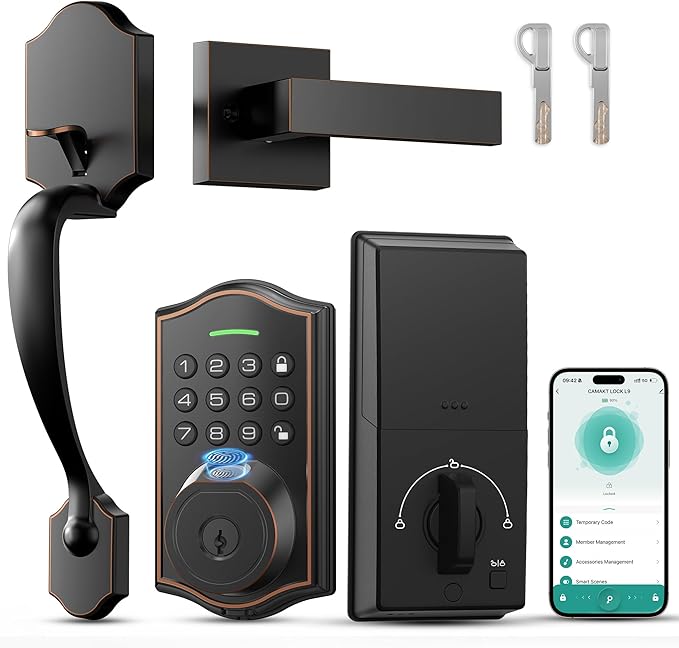 Keyless Entry Door Lock with Handle,Fingerprint Smart Front Door Lock Set,APP Control, Electronic Keypad Deadbolt with Lever Handle, Anti-Peeping, Auto Lock, Easy Install, Oil Rubbed Bronze