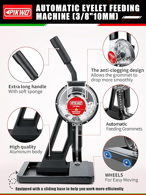 Automatic Eyelet Feeding Machine (3/8" 10mm) Press Punch Tool Kit with 3/8” Die and 10,000 Pcs Grommets Self Piercing Grommet Maker Labor Saving Corsetry Class Recommended