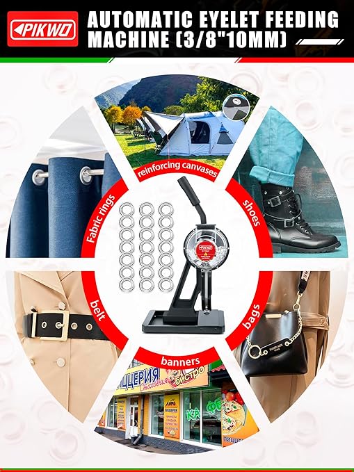 - Wild range use:This machine is perfect for a variety of applications, including tarp repairs, creating fabric rings, reinforcing canvases, and working with canopies, banners, flags, leather, belts, bags, and shoes.