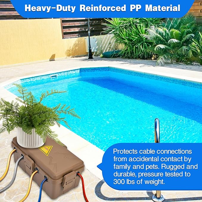 - LUMINOUS SAFETY WARNING LABEL: the lid of the outdoor electrical box has a luminous warning label that glows at night to prevent accidentally touching it, ensuring the safety of your family and pets.