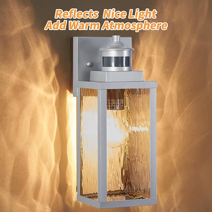 2 Pack Silver Motion Sensor Outdoor Wall Lights,Updated Dusk to Dawn Outdoor Lighting, Exterior Light Fixtures Wall Mount,Waterproof Porch Light Outside Lights for House