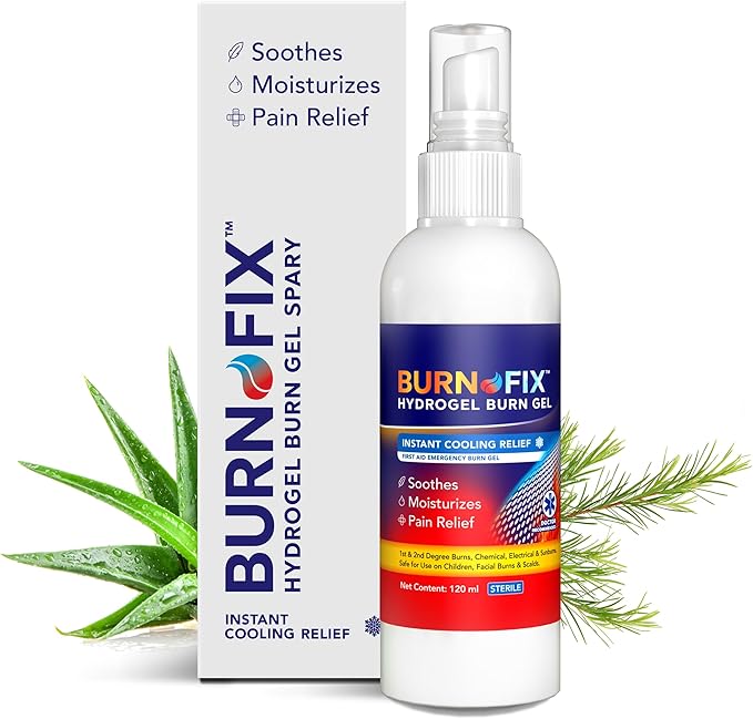 - Instant Cooling Relief: BurnFix Hydrogel Burn Spray Gel provides immediate cooling and soothing relief for first and second-degree burns, chemical burns, and sunburns. Perfect for use on sensitive skin, including the face.