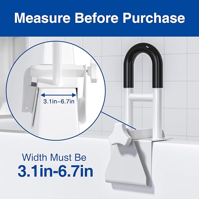 - Width Must Be 3.1"-6.7": Fits bathtub walls ranging from 3.1 to 6.7 inches, making it compatible with most standard tubs. The adjustable design ensures a secure and stable setup. Note: Not suitable for fiberglass surfaces.
