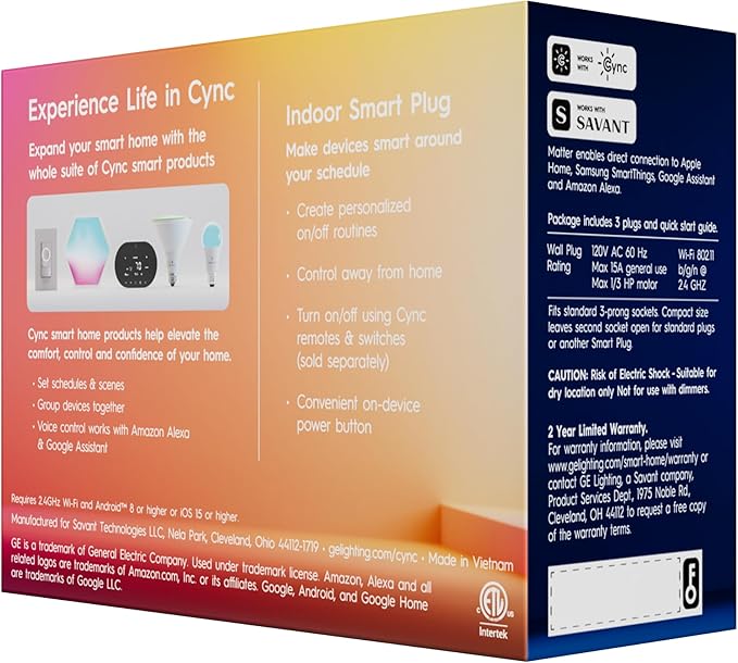 - What's Included: Three (3) Cync Smart Indoor Plug, Quick Start Guide