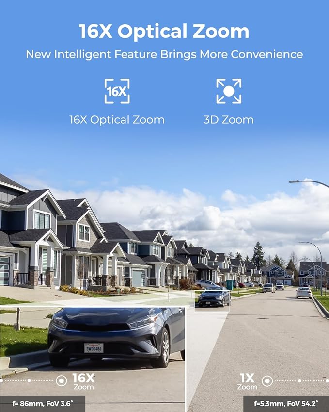 - 16X Optical Zoom &3D Zoom Function: Enhance your live view experience through the streamlined 3D zoom function. Instantly focus on specific areas without the need for multiple clicks, effortlessly centering the target on your screen for seamless capture.