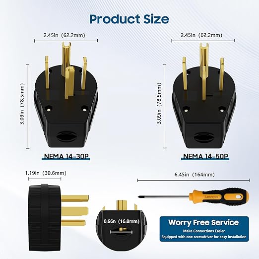 - 12-Month Warranty: We provide this NEMA 14-30/50P Straight Blade Angle Plug with worry-free 12-month warranty and friendly customer service, If you have any questions, we will resolve them within 24 hours.