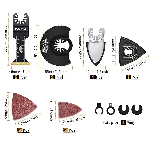 - 13 Types Of Multitool Blades: We carefully match these Multi Tool Blades Kits based on the daily use scenarios of workers. These oscillating saw blades include 13 different blades, 4 pads, and 100 sandpapers, meeting all your daily cutting needs.