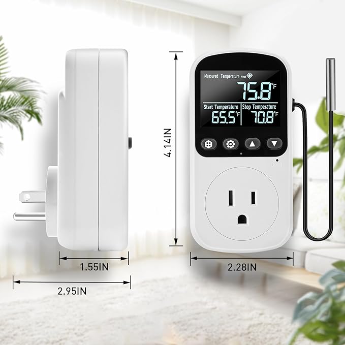 - VERSATILE TEMPERATURE CONTROL: This digital thermostat outlet features heating and cooling modes, allowing you to precisely control temperatures from -104°F to 210°F (-40°C to 99°C).