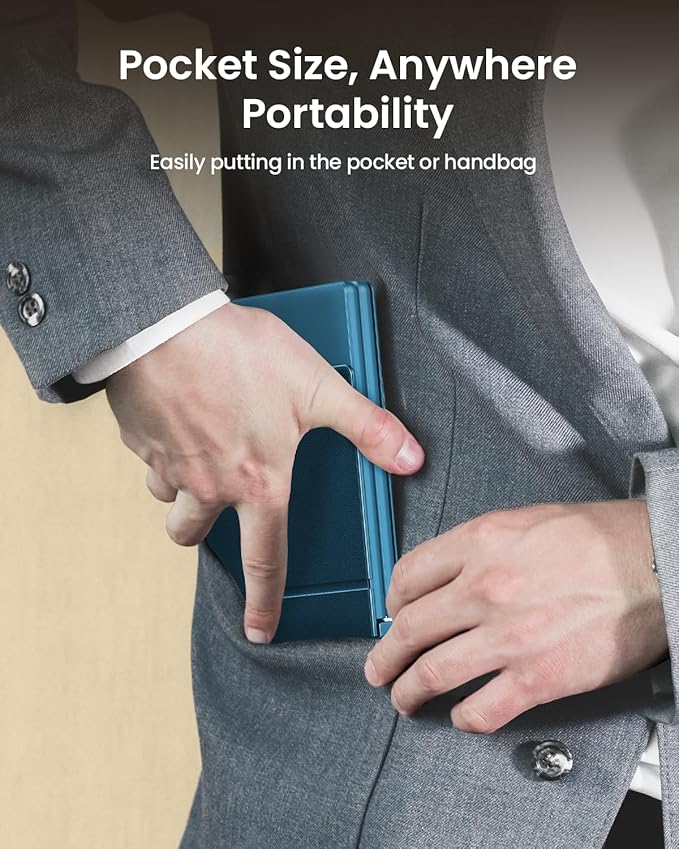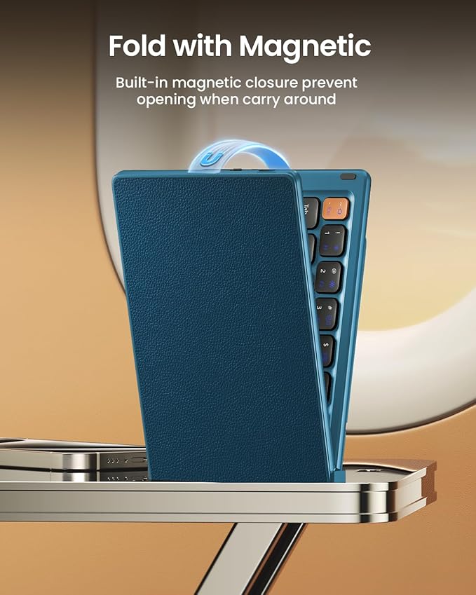 - 【Folding Mini Keyboard】 Only a 7.8-ounce palm-sized foldup keyboard is designed in two-fold and compact enough to save desk space or take it on the go. Covers with PU Leather surface, good texture and protection, a perfect companion for business travelers. Maximum convenience for you with minimum weight and size