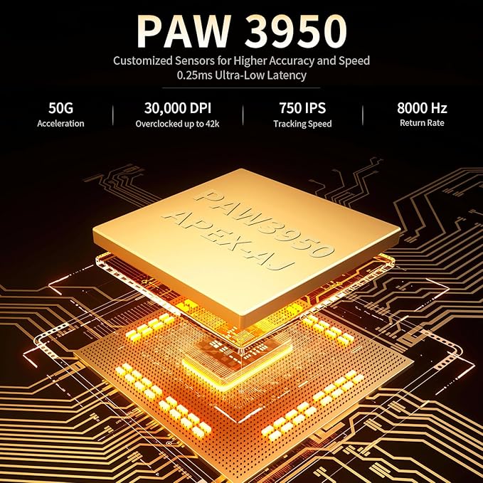 - 【AJAZZ AJ159 APEX】This ergonomic wireless gaming mouse is customized for enhanced performance by utilizing the latest PAW3950 sensor to deliver best-in-class accuracy and precision for fast-paced competitive gaming, delivering up to 42K programmable DPI, 8000hz/0.125ms polling rate, 750 IPS speed and 50g acceleration. Take your gaming experience to the next level.
