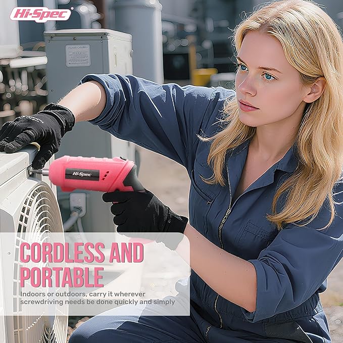 Hi-Spec 42pc Pink 4V USB Electric Power Driver & Household Tool Kit. Cordless Power Screwdriver and Hand Tools in a Compact Box Case