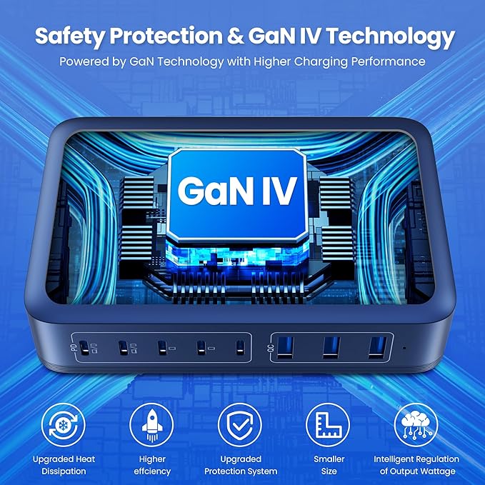 USB C Charger 415W USB C Charger Block, 8-Ports GaN IV Fast Charging Station Hub,Dual PD 100W Laptop Charger Adapter,for MacBook Pro/Air/iPad/iPhone16/15/14/13/Apple Watch/DELL/Samsung for Home(Blue)